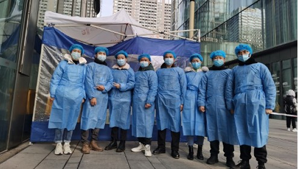 各位志愿者們換上藍(lán)白色的防疫服,積極踐行企業(yè)社會(huì)責(zé)任,大家鼓足干勁、堅(jiān)定信心,有條不紊地開展服務(wù)工作。整個(gè)志愿團(tuán)隊(duì)配合默契、分工明確、行動(dòng)迅速、工作細(xì)致,確保核酸檢測(cè)工作有序、安全地進(jìn)行。