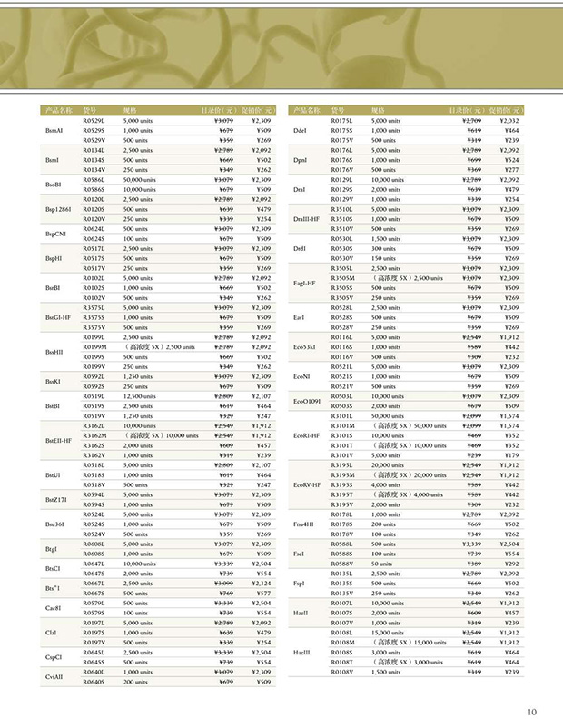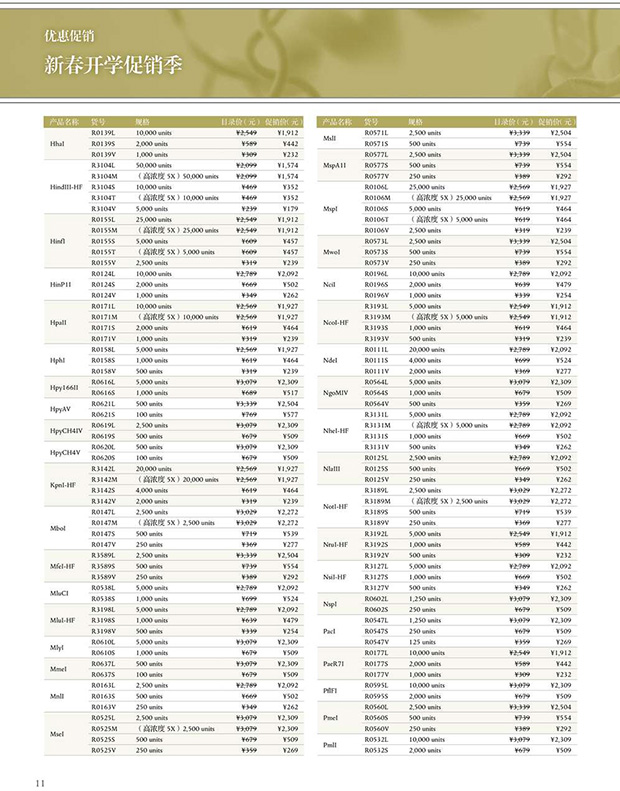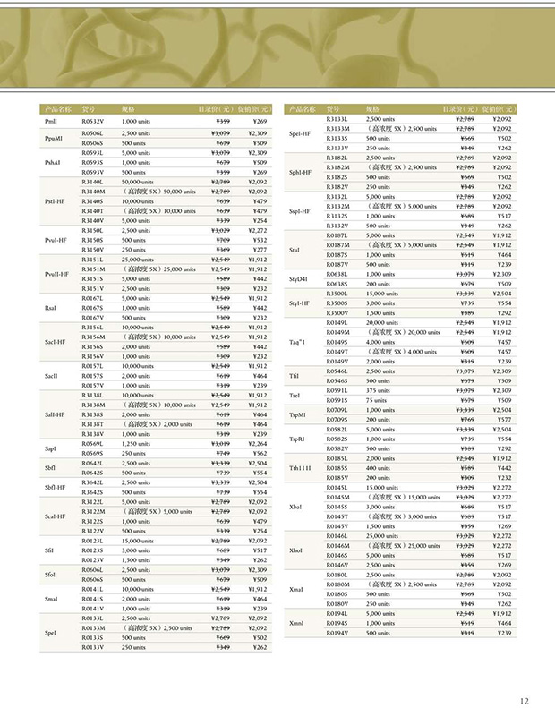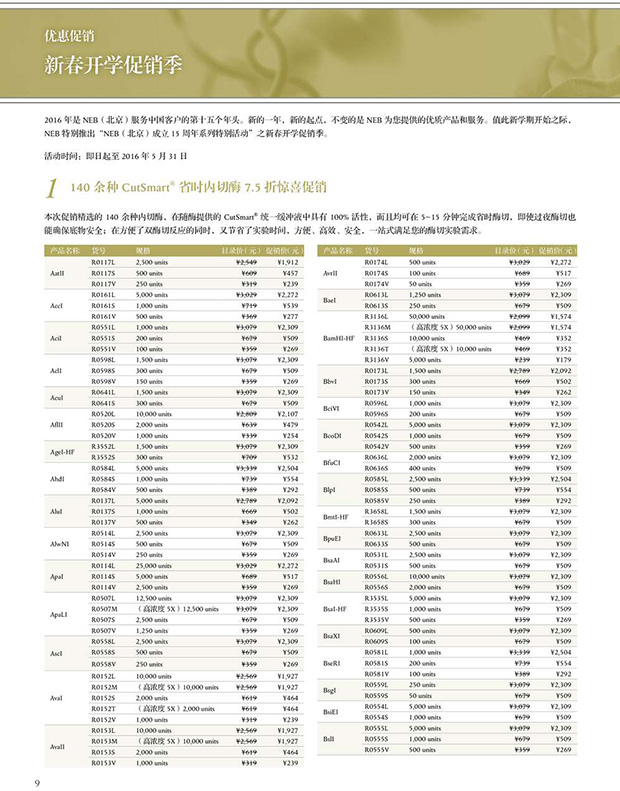 1、140 種常用省時(shí)內(nèi)切酶 7.5 折促銷