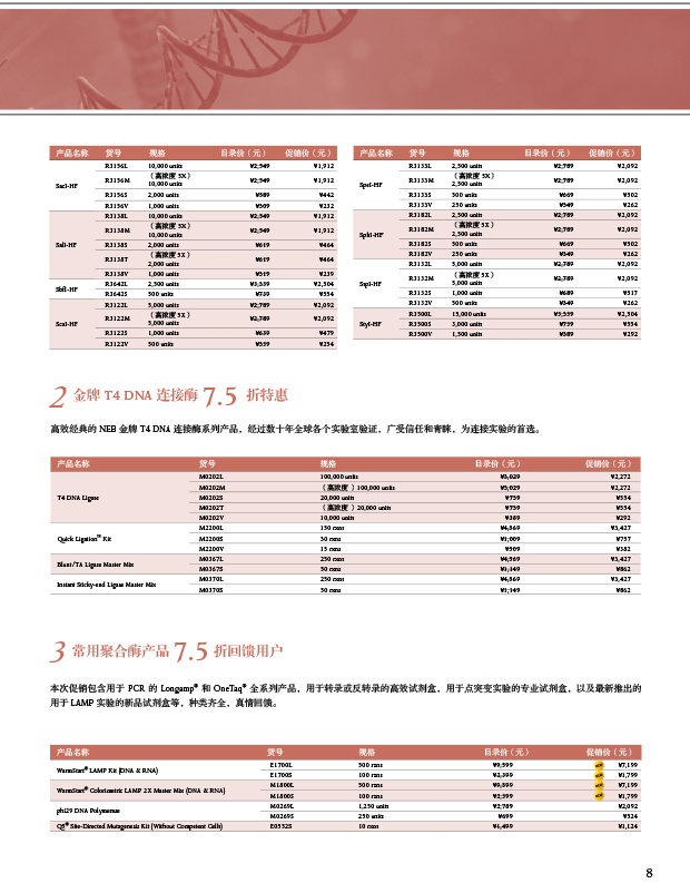 7.NEBuilder? 高保真 DNA 組裝預(yù)混液 7.5 折