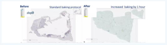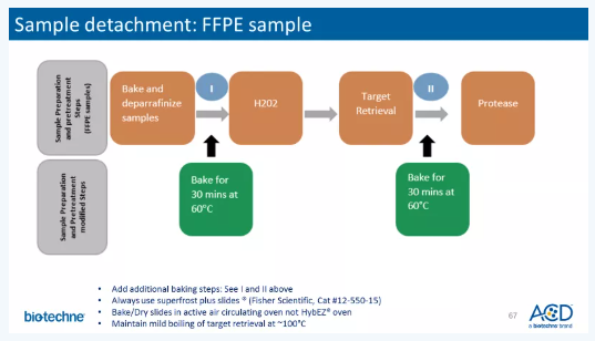 石蠟切片可以在第一步烤片后或者target retrieval之后增加烤片環(huán)節(jié),降低脫片問題(見上圖)。