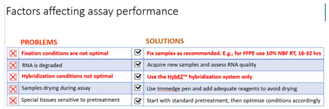 在解決了樣本制備和預(yù)處理問題后,客戶還會遇到的一些RNAscope檢測常見問題有: